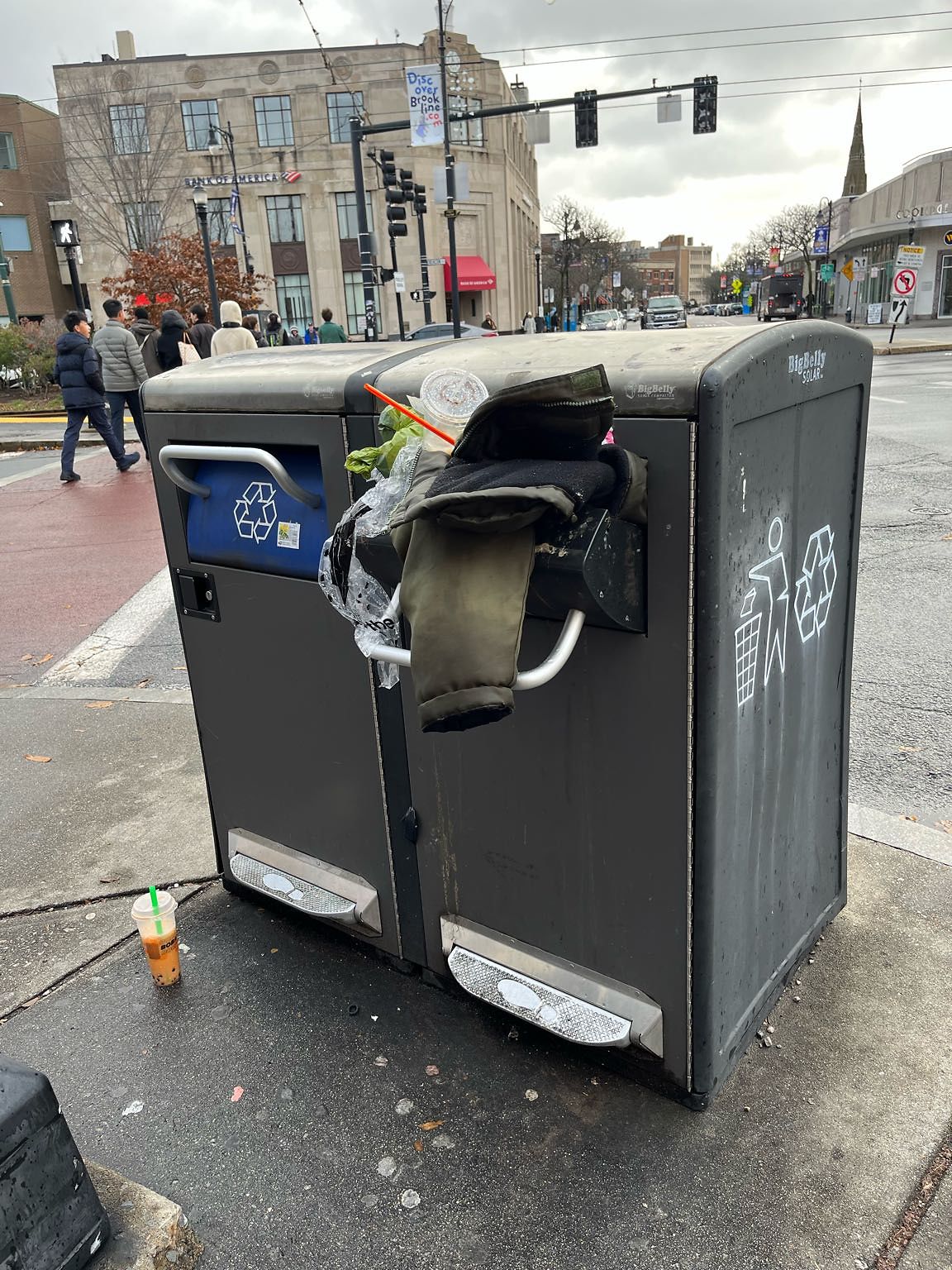 Over-flowing Big Belly trash bin; I.e. - rat restaurant open for business