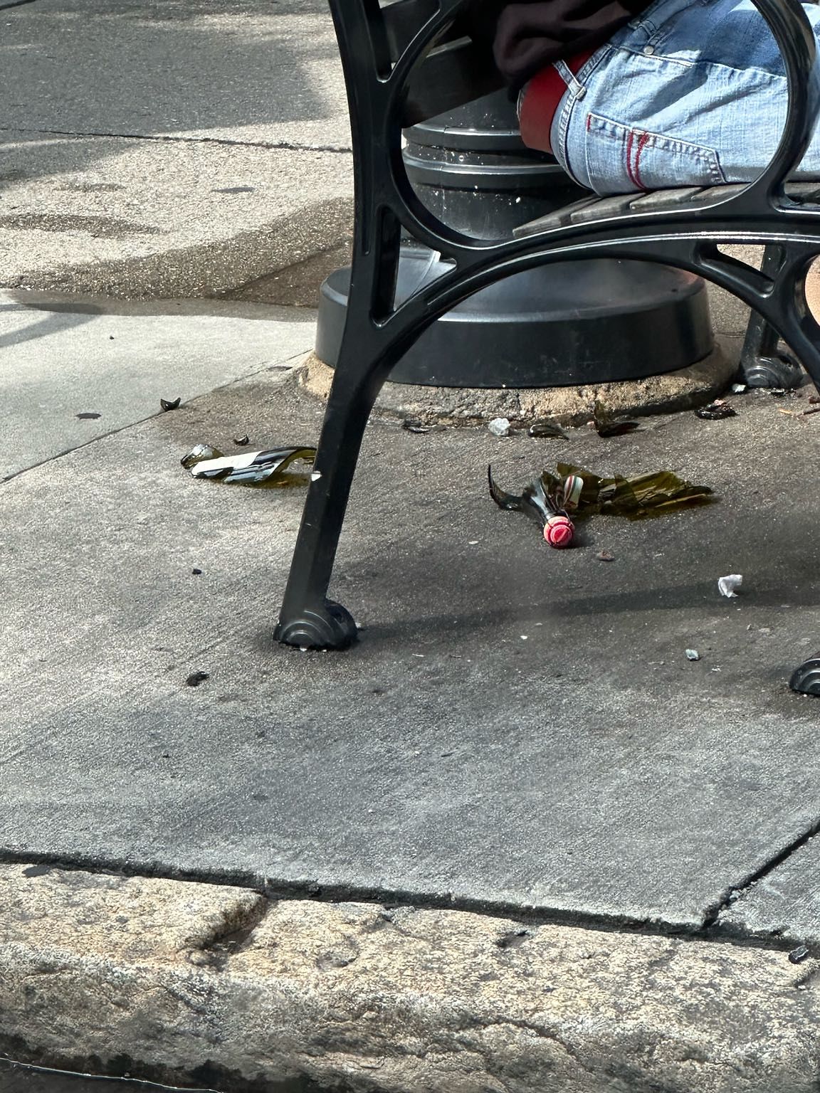 Noticed a broken wine bottle on the sidewalk I front of that Praise Shadows gallery on Harvard.