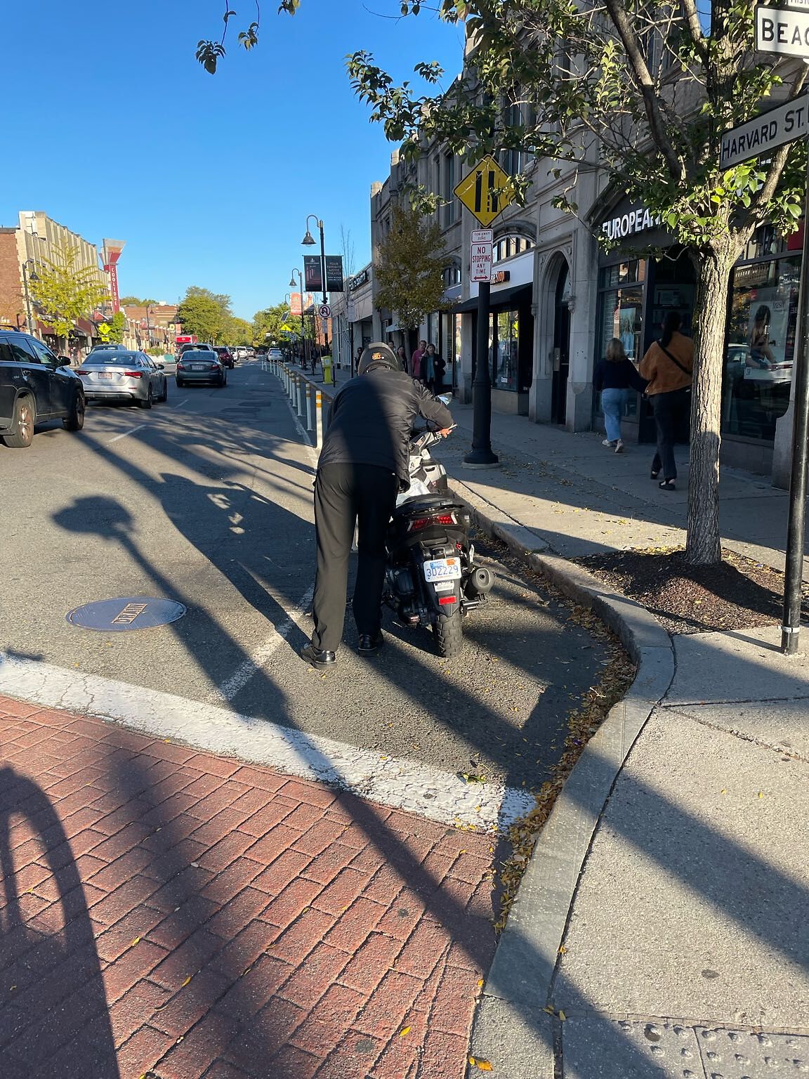 Moped Delivery parked and blocking Bike lane.