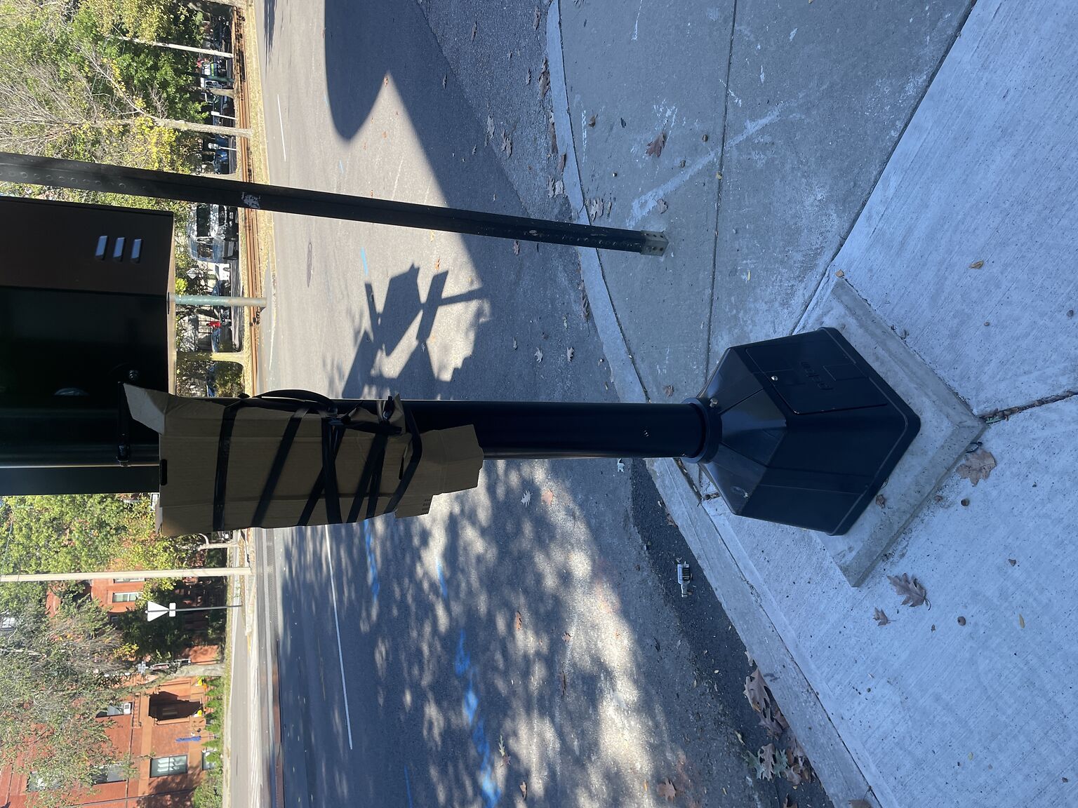 The city installed a half-done crosswalk signal. It leaves pedestrians stranded on T track. Also, drivers will see “lights flash for crossing” & assume there are no walkers since the lights don’t work