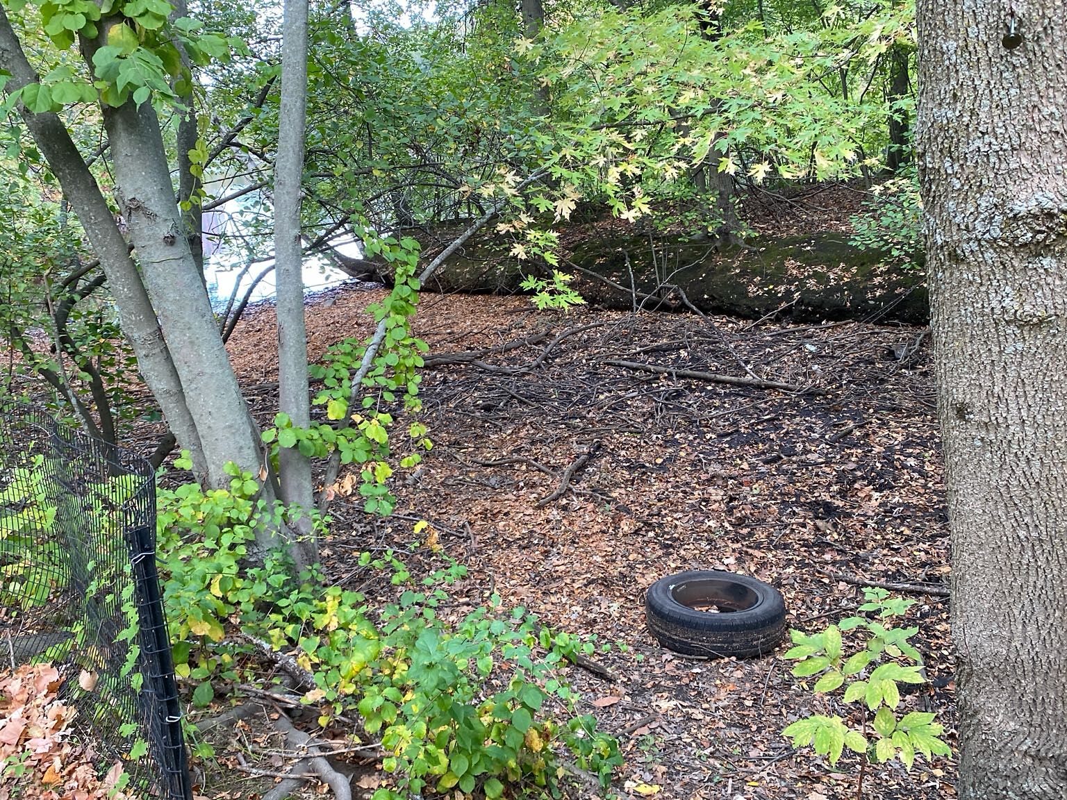 Auto wheel and tire in Olmsted Park when water receded.
