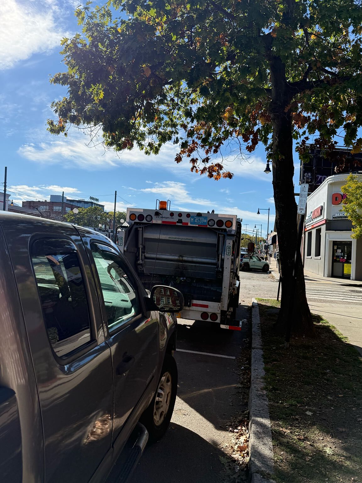 Town vehicle parked in a no parking area, making a crosswalk less safe (bc it's hard to see vehicles turning from Beacon!)