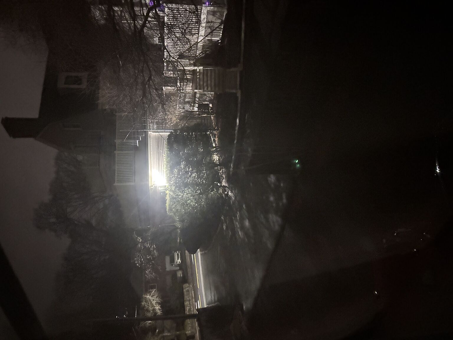 Excessively bright exterior light in driveway causing glare and light trespass into neighboring properties at night. Light appears unshielded and remains on through the entire night every day.