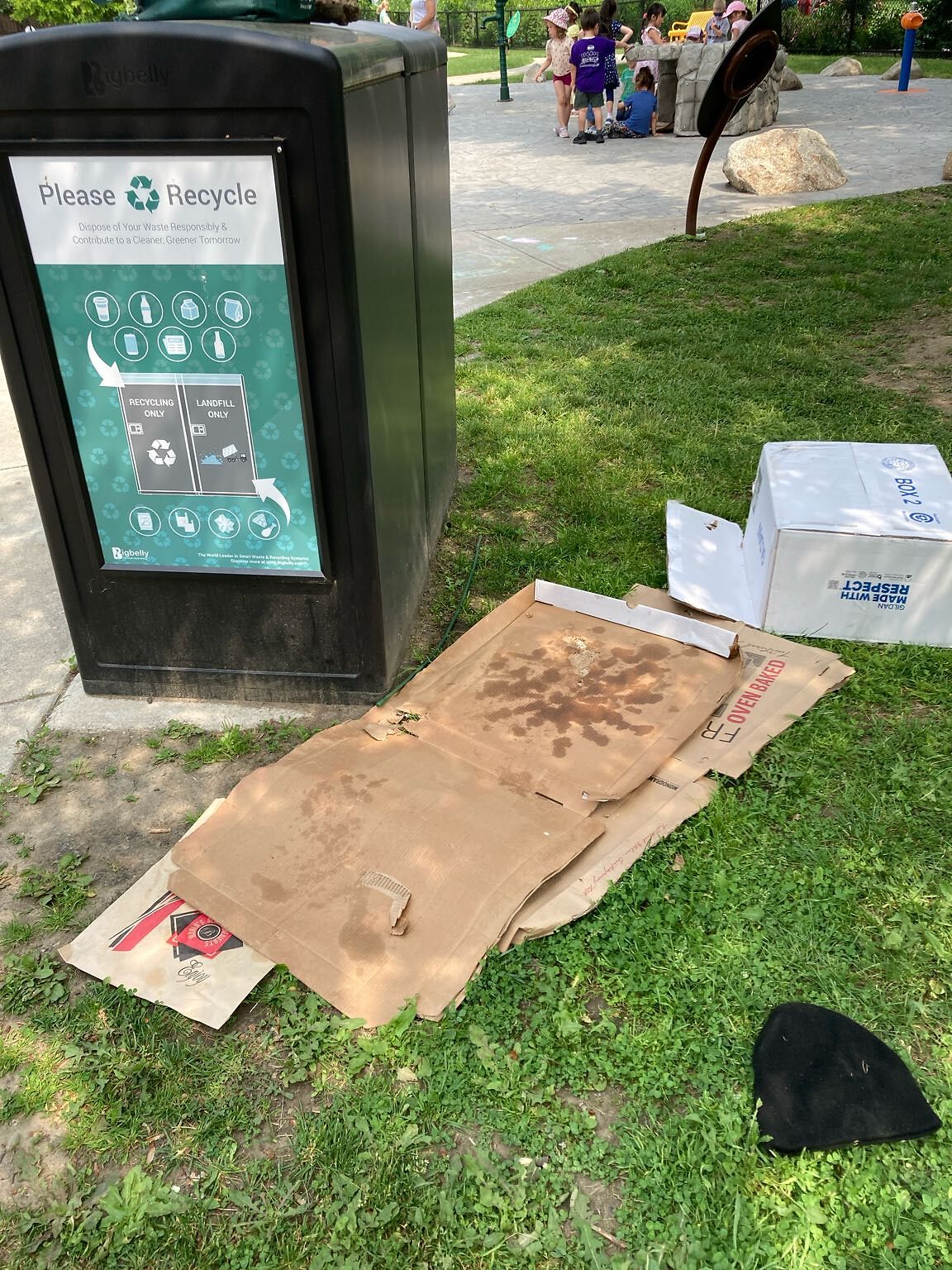 Trash has been at this location, Brookline Avenue playground for over a week, even though the trash barrels were emptied. Children playing this playground every single day.