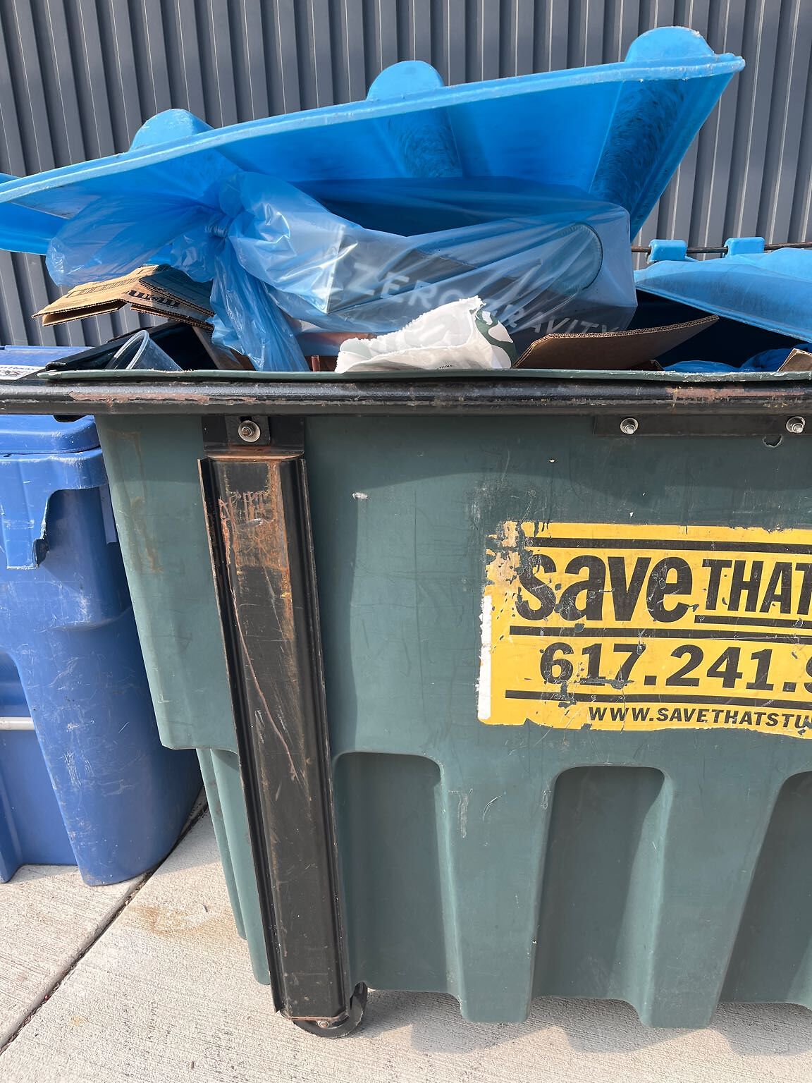 Overflowing trash with popcorn inside for rats to enjoy. I love the Coolidge theatre but not ok. At least 6 bins overflowing. All include food.