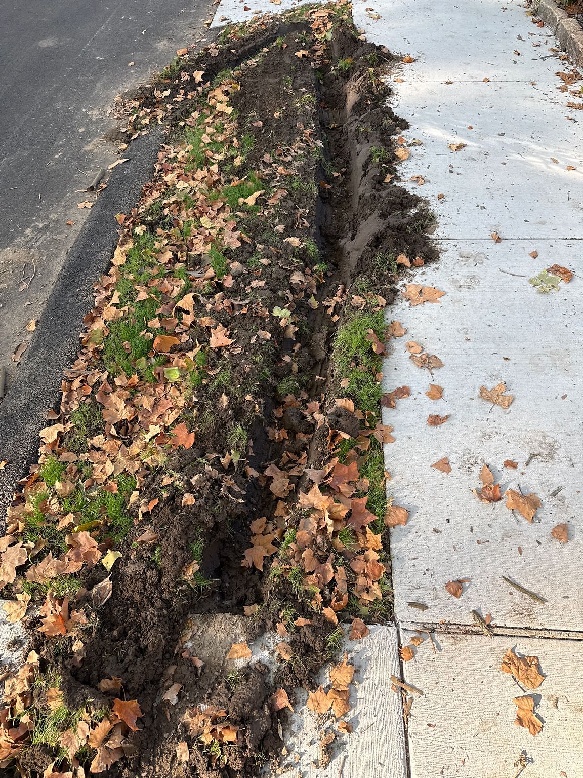 We had our street redone, and then some town truck drove through and created these massive trenches in the newly deposited soil.