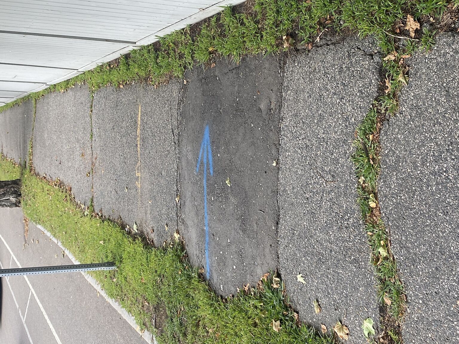 I write to follow up regarding my phone call related the sidewalk repair in front my house. It needs repair because it is raised, unlabeled, and cracked. It poses a dangerous situation-falling.