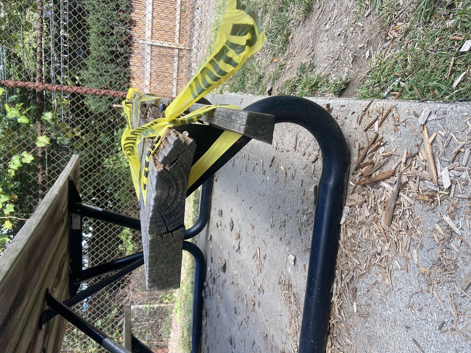 Broken picnic table bench at Boylston Street Playground (Pierce @ OLS).
