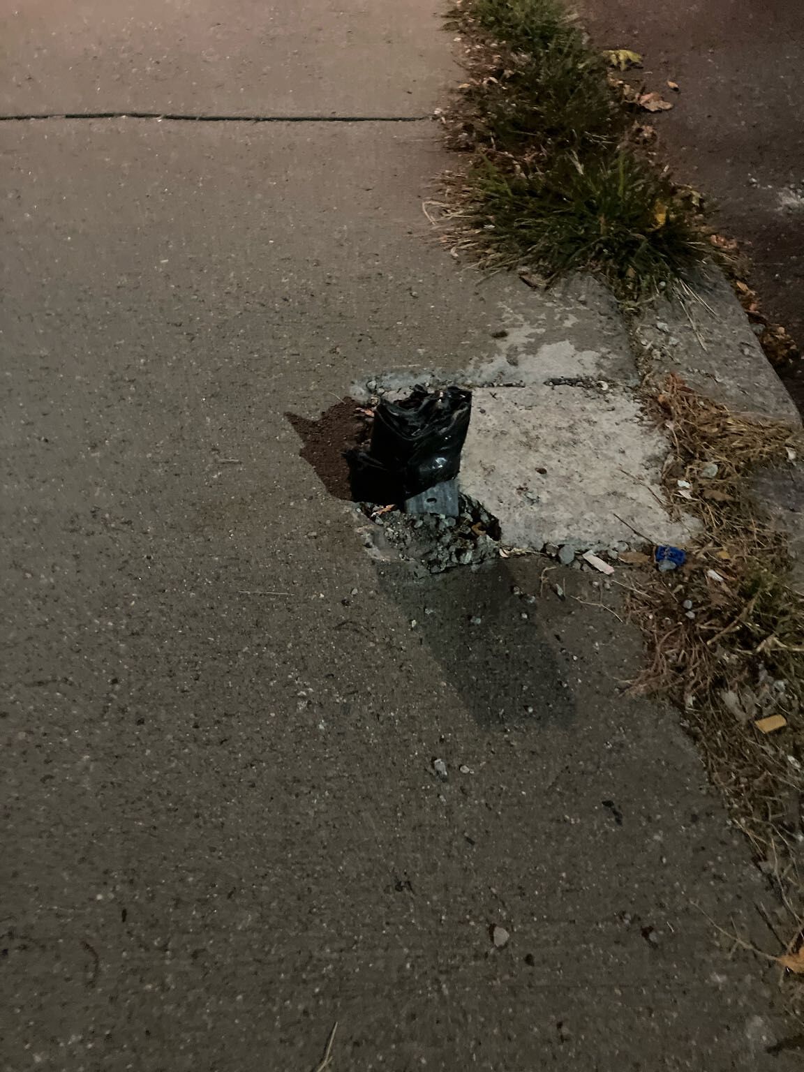 Another broken off base from a sign poll. On Fuller just before Harvard, with multiple restaurants w/ dinner clientele. A tripping hazard. ( sorry for having to report it in a wrong category)