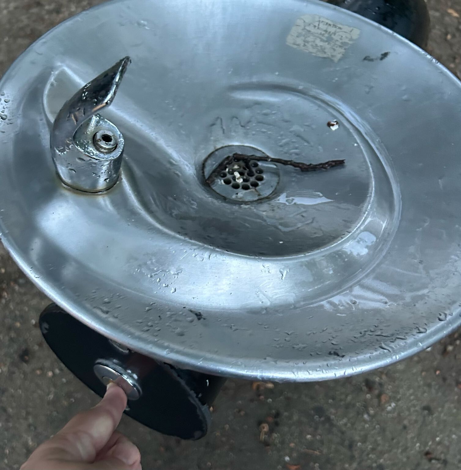 Fountain does not work properly. As you can see, the button is pressed and there is no water coming out. Please repair this in a reasonable time. It has been months