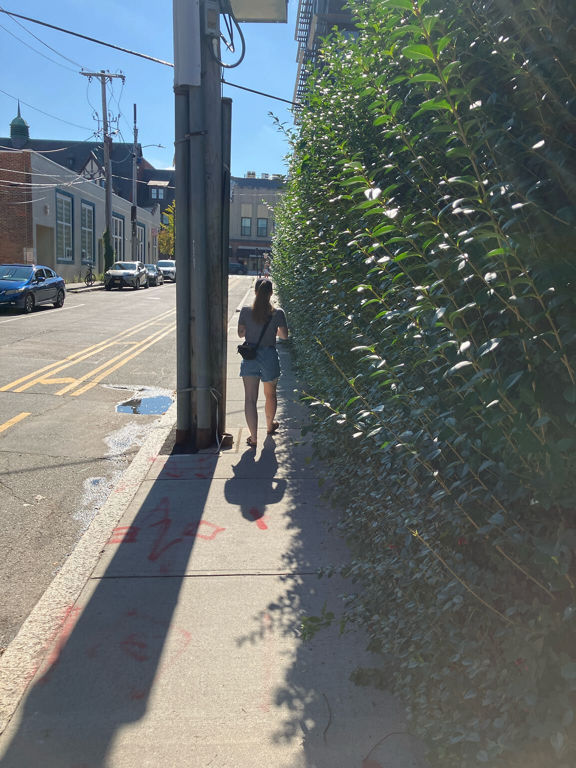 Your request has been received and is currently pending investigation by the Highway/Sanitation Department. Upon investigation, if the site has a sidewalk obstruction the property owner will be notified and will have 21 days to address the issue, per Town Sidewalk Obstruction Regulations. After those 21 days the location will be reviewed again. To follow up on your request, please email dpwenforcement@brooklinema.gov. -
