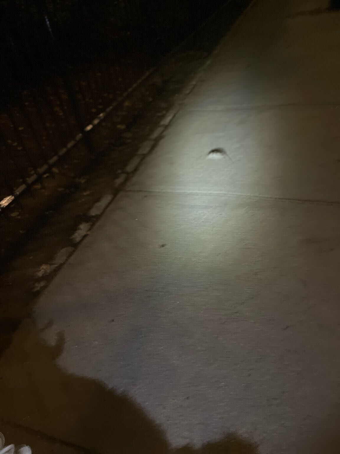 Dead rat in sidewalk next to 99 Pond Avenue