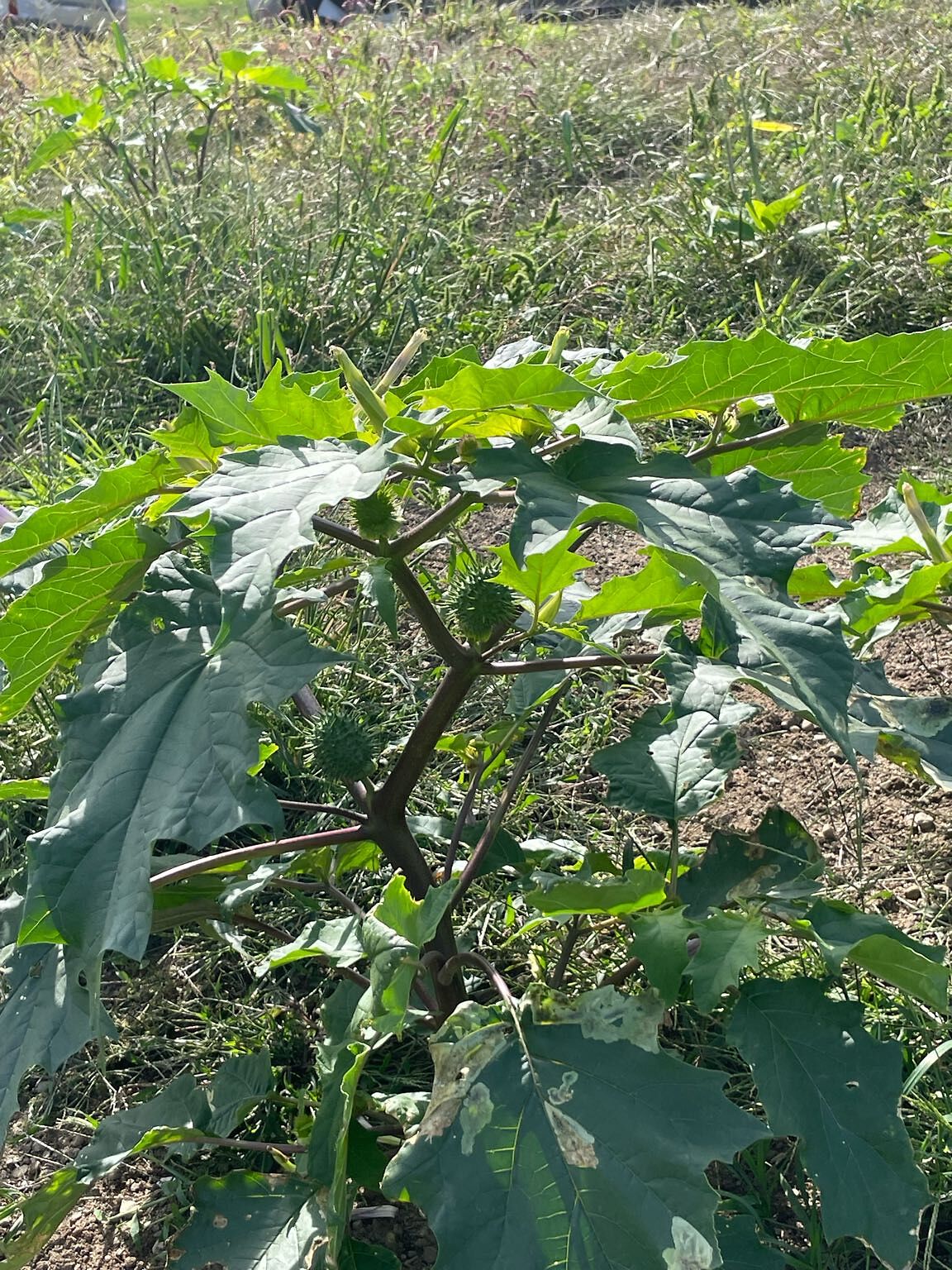 Toxic plants (gimson weed) at top of green dog/sledding hill. Extremely toxic to humans and animals. Highly invasive. Dangerous to touch. It's enclosed in the berm at the top of the hillside.