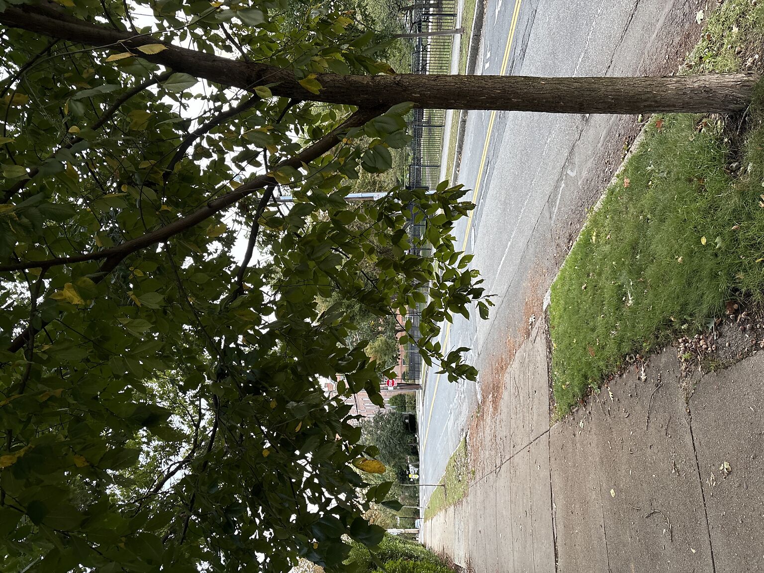 The city public tree the branches are very low and are hanging over the sidewalk and blocking the path and needs to be pruned