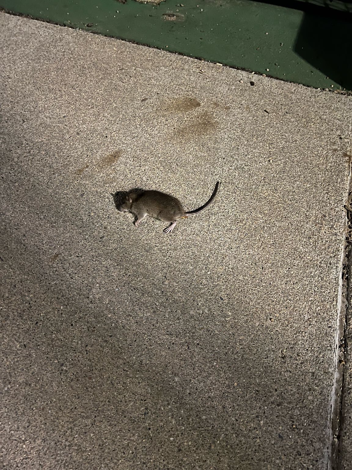 Dead rat on walkway between Ruffin Ridley School field and basketball courts between Devotion and Stedman Streets