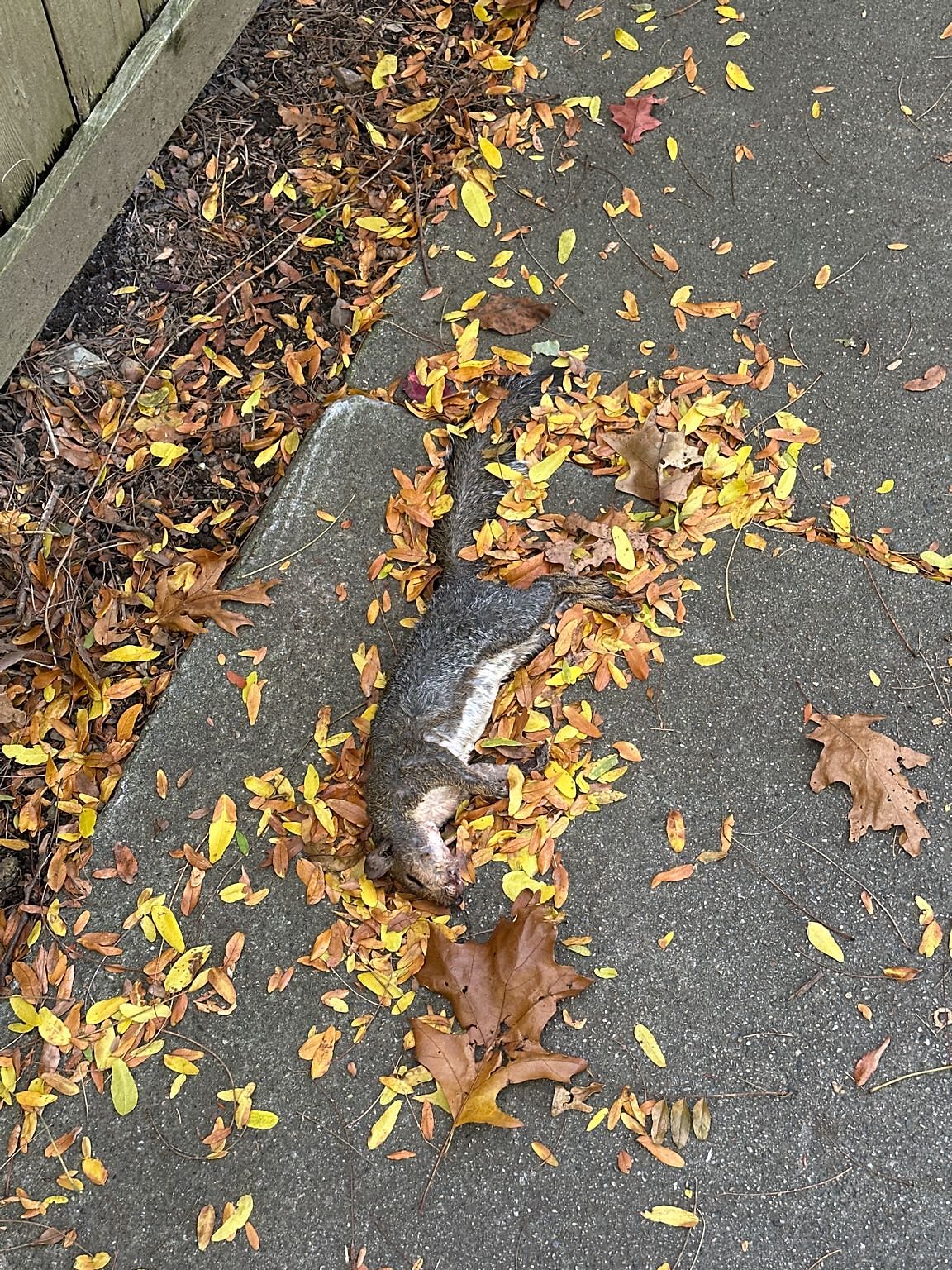 Dead squirrel on sidewalk