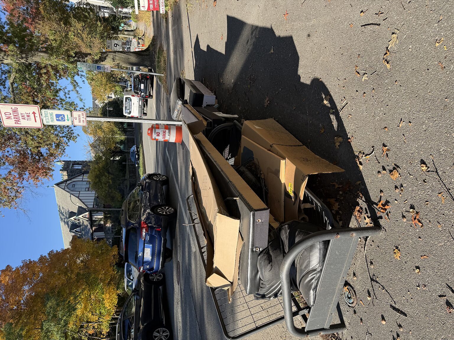 There has been a mountain of furniture and boxes blocking the sidewalk for the last 3 weeks. This is in the back of 9 Eliot on the route 9 side.