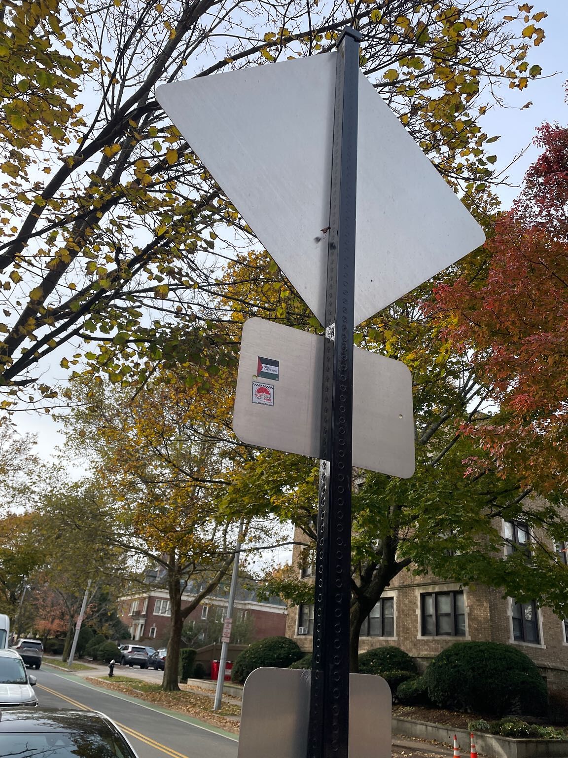 on back of yellow/black arrow signage; pls scrape down political propaganda stickers