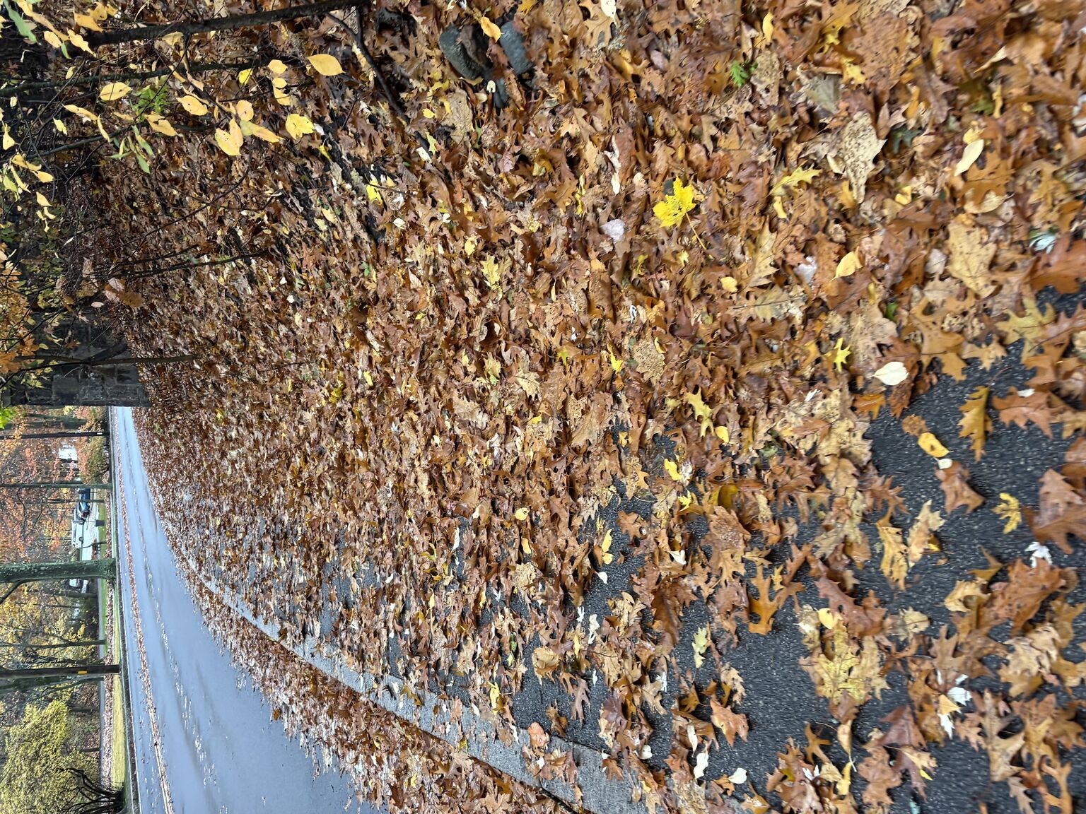 Why in the world are we so concerned with the leaves down at the pond but yet the sidewalk is completely covered?