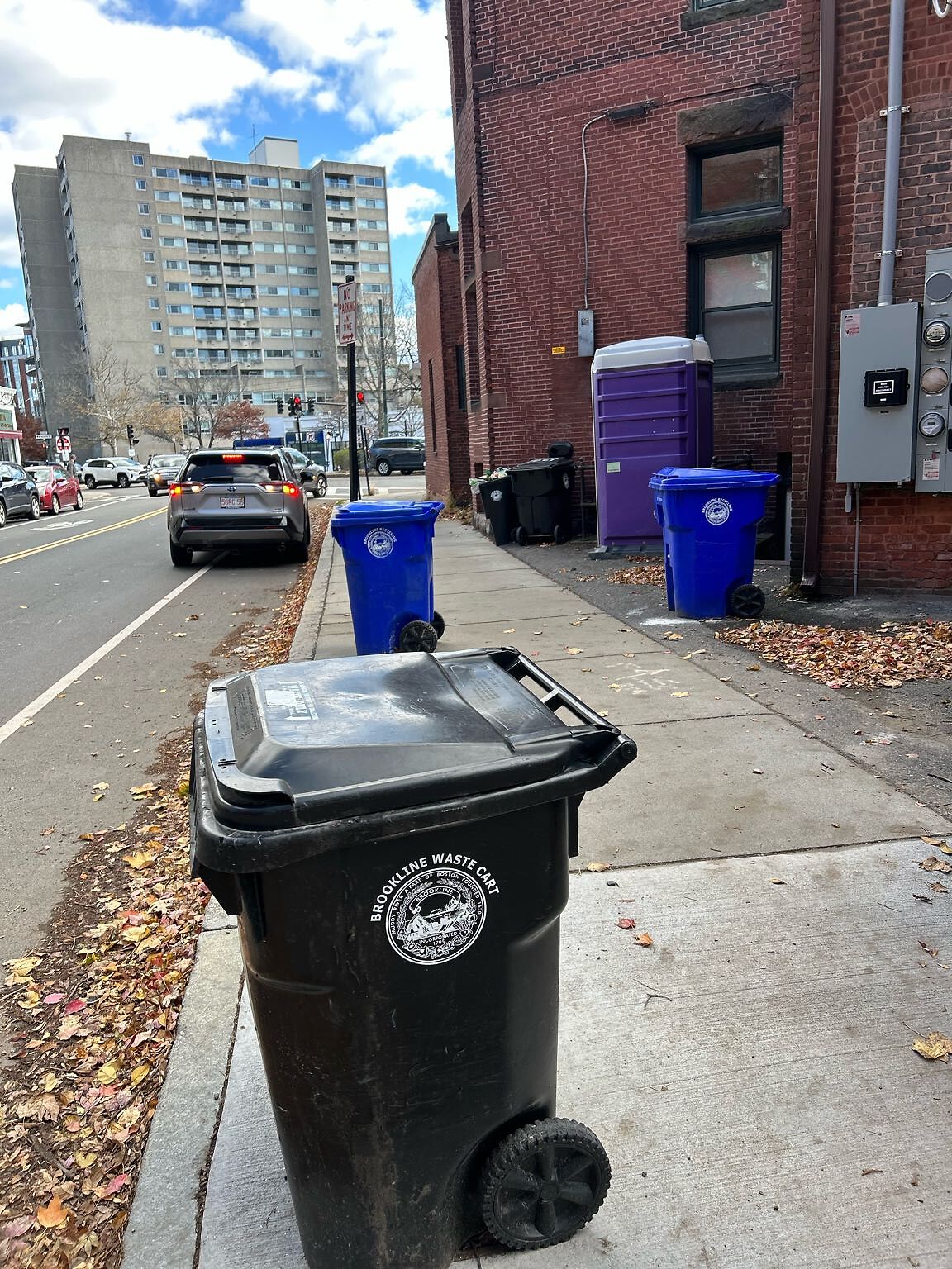 This is a weekly event. Overflowing garbage Not putting away garbage cans.