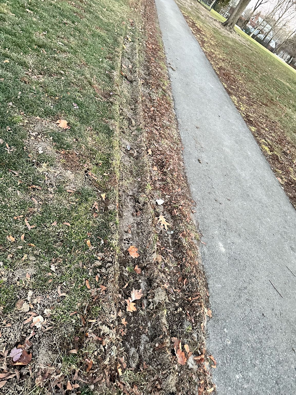 Town truck chews up ground, leaves big ridges all winter frozen ground. People will trip. Please fix and stop doing this.