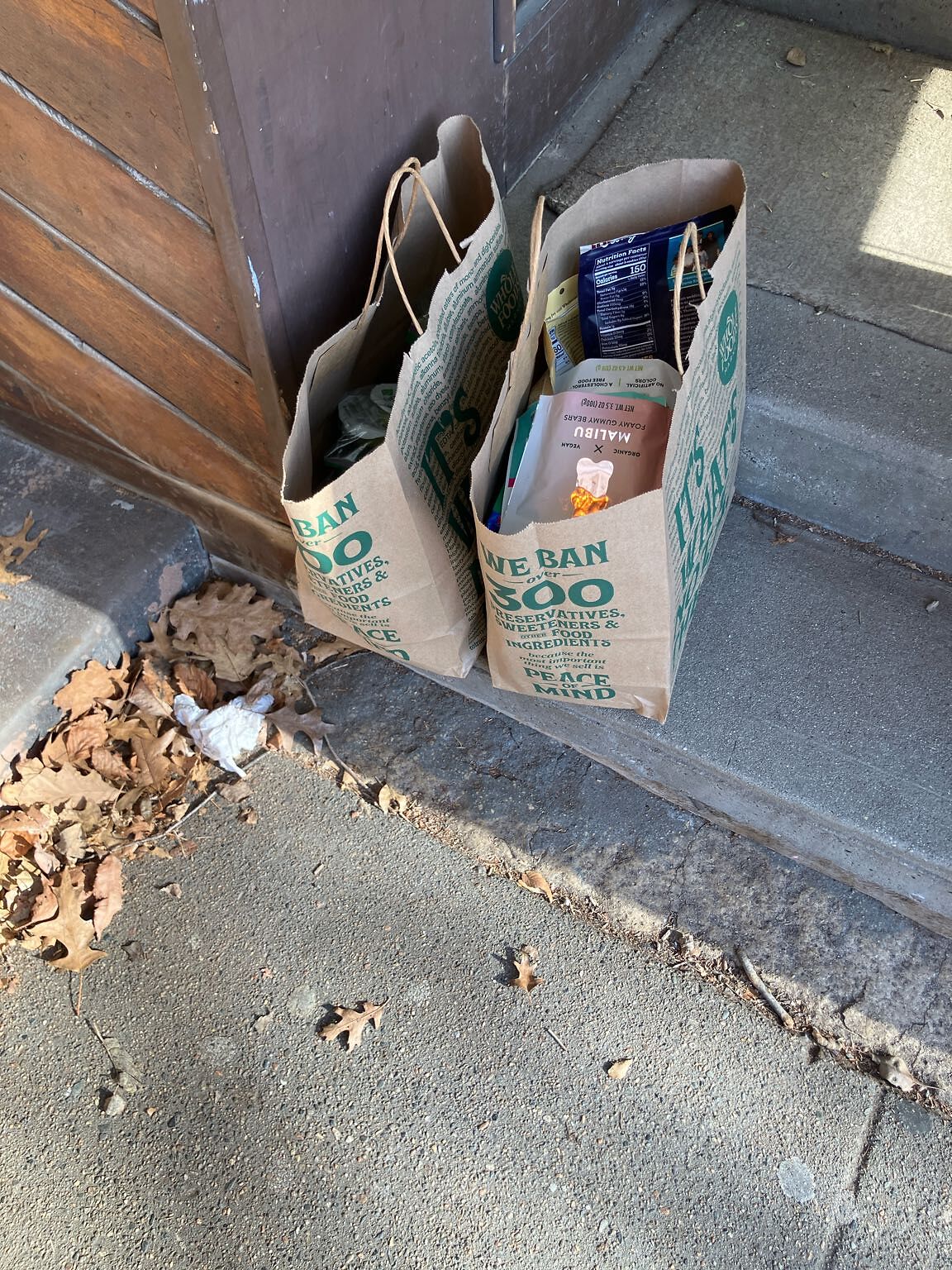 Bags of food are regularly left in this alcove, well into the night, where they can be consumed by rats. The food is generally at its expiration date, and sometimes the packages have been opened.