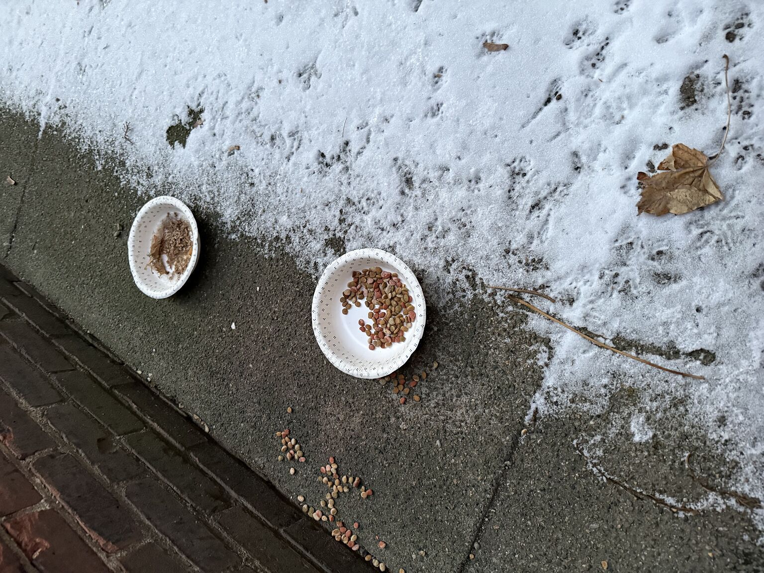 Bowls and plates of food are constantly left out for the wild turkeys and rodents